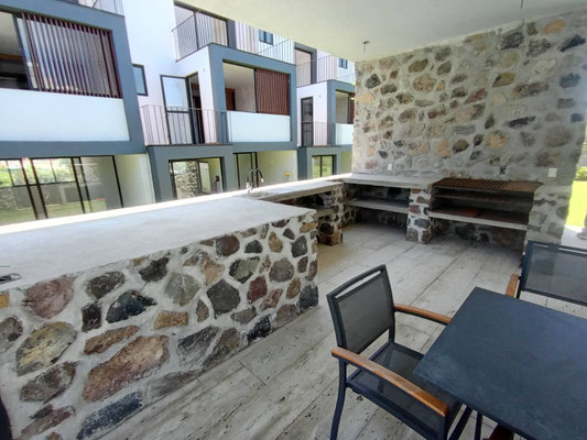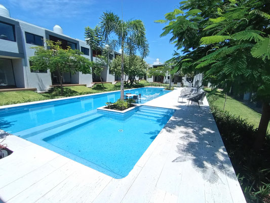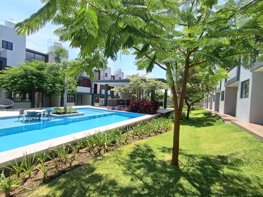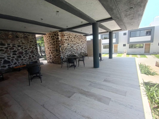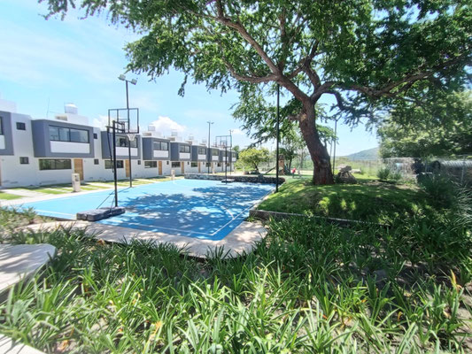 Alberca con zona de camastros palapa con asador baños, gimnasio, salón de yoga, cancha de basquet bol, cancha de futbolito 5 & 5, cancha de pádel tenis, juegos infantiles, ludoteca, salón de usos múltiples.